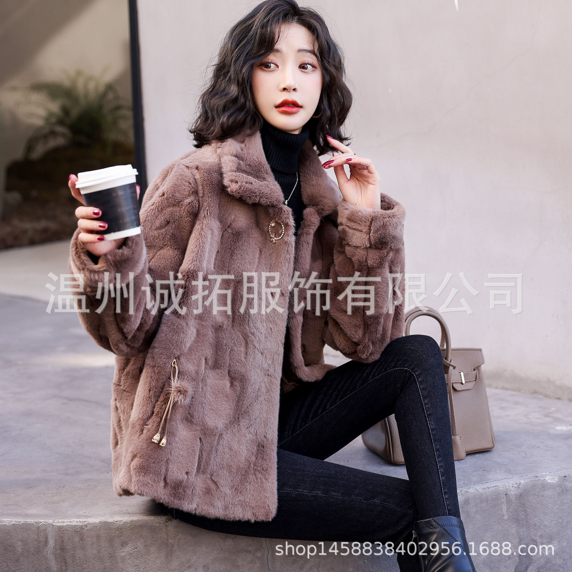 新款高级感仿貂大衣贵妃貂皮草外套女显瘦皮毛一体秋冬季短款外套