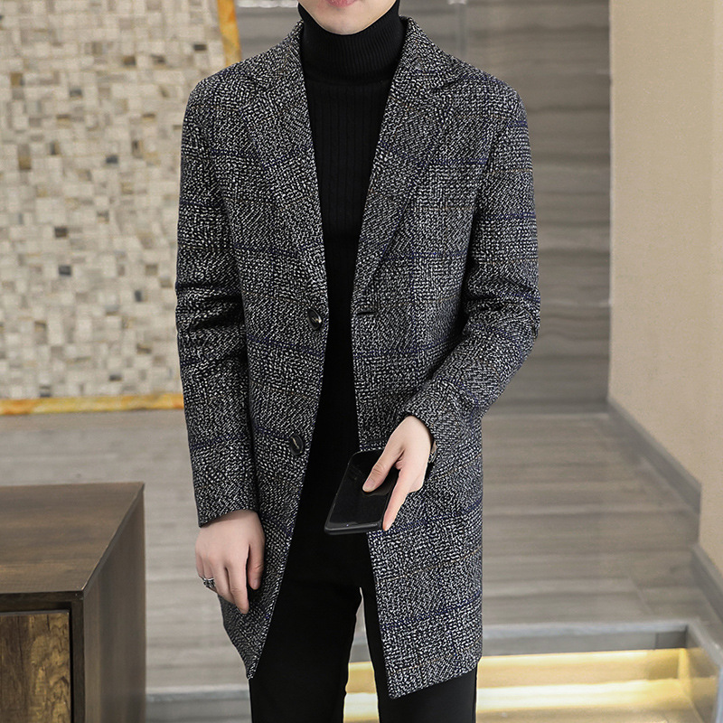 2024 new men's coat coat plaid woolen cloth windbreaker long warm winter coat men's in stock a generation of hair