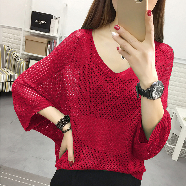 2024 New Summer Style V Neck Cut Out Bat Sleeve Thin Short-Sleeved T-Shirt Women's Blouse Loose and Versatile Top