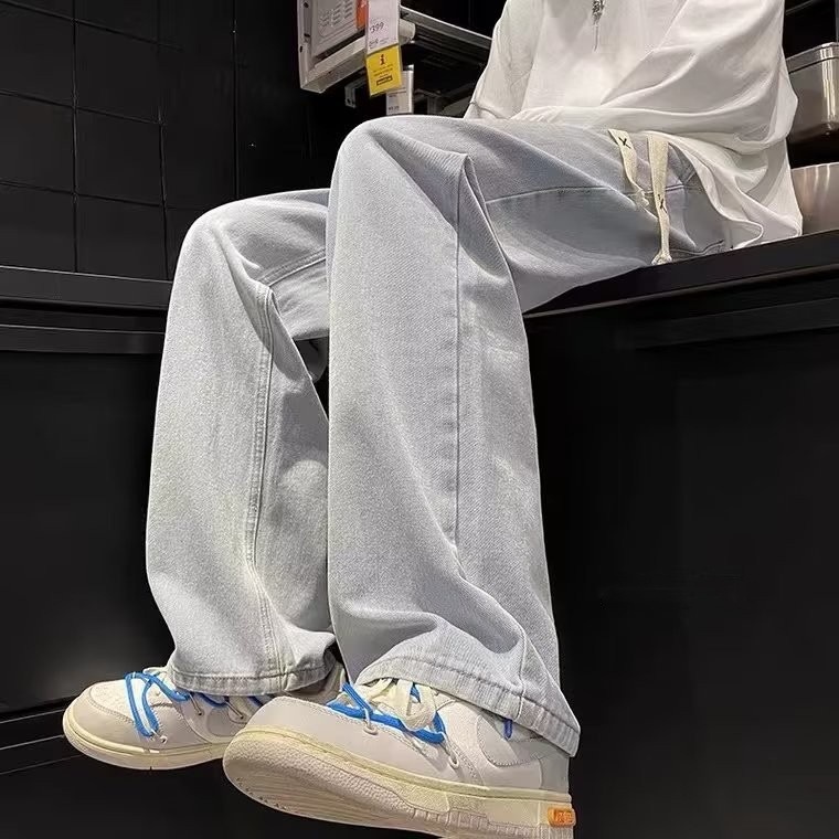 American Style vibe Style Pants Men's Autumn All-match Jeans Trendy Brand ins High Street Spring and Autumn Loose Straight Wide Leg Pants