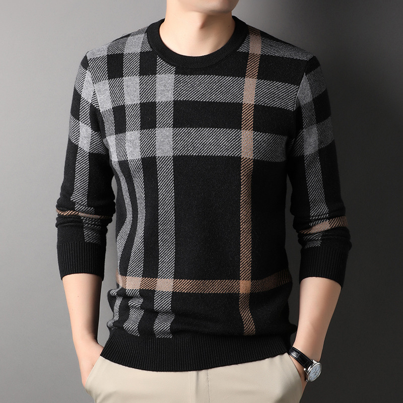 Autumn 2022 New Sweater Men's Young and Middle-aged Striped Men's Base Shirt Crewneck Slim-fit Men's Sweater Trendy
