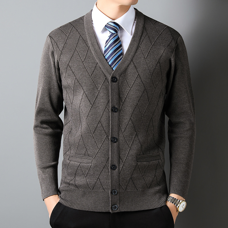 Autumn and Winter 2024 Knitted Cardigan Dad V-Neck Sweater Coat Casual Outerwear Sweater Men's Long Sleeve Sweater