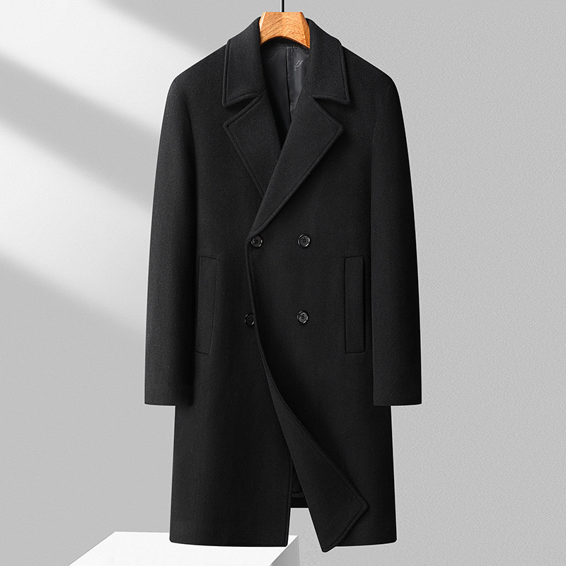 Autumn and Winter 2024 New Men's Woolen Coat Double-breasted Long Knee-length Korean Slim-fit Woolen Coat for Men