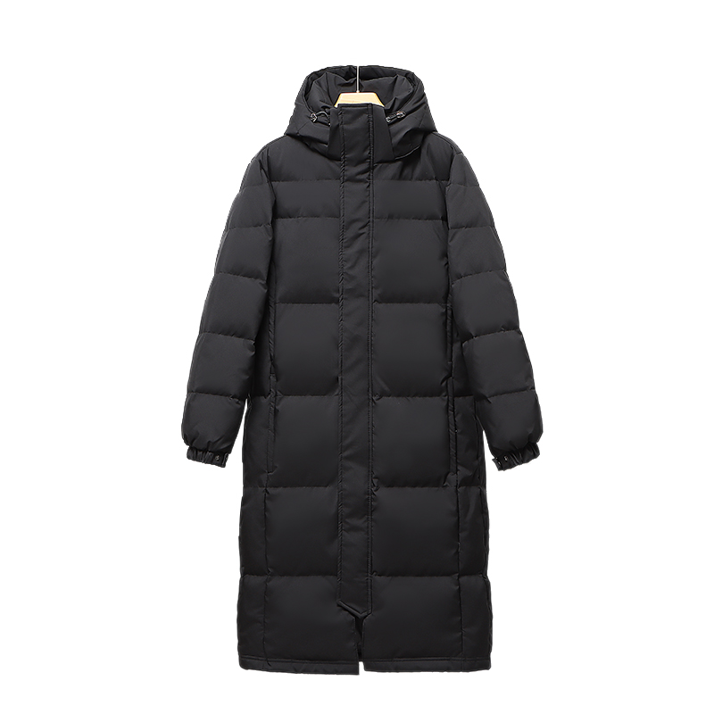 Black Chinese Opera Women's Down Jacket Long Knee-length Thickened Loose Removable Cap 2024 New Couple Winter