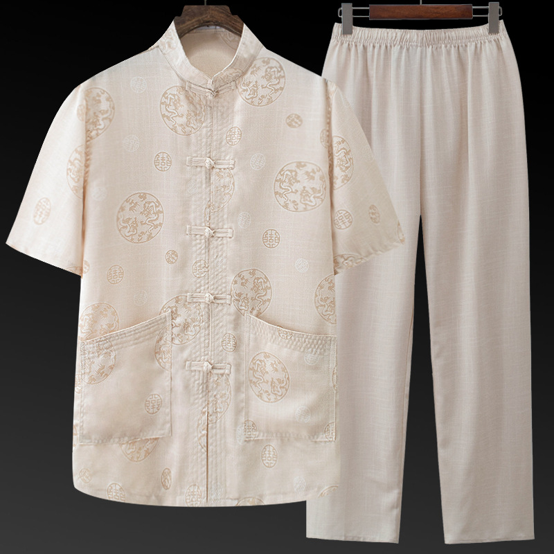Cotton and Linen Tang Dress Male Dad Short-sleeved suit Chinese Style Thin Middle-aged and Elderly Grandpa Summer Clothes Free Shipping