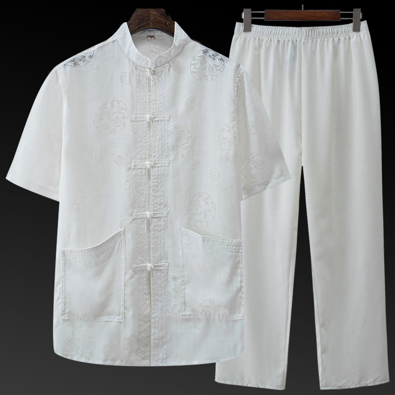 Cotton and Linen Tang Dress Male Dad Short-sleeved suit Chinese Style Thin Middle-aged and Elderly Grandpa Summer Clothes Free Shipping