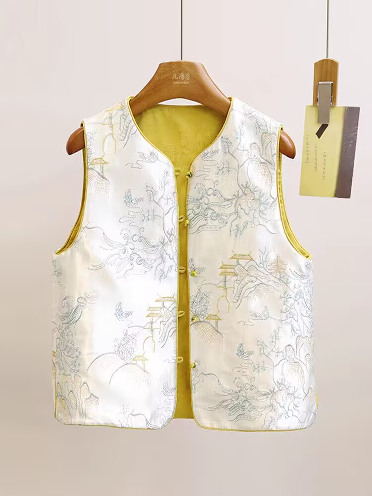 Factory Outlet High-end Guofeng Vest Women's Embroidered Vest Loose Shirt Spring New Chinese Style Two-sided Vest Jacket
