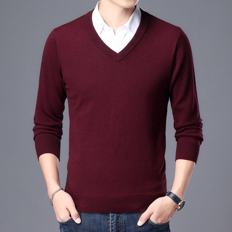 Fall 2024 men's woolen sweater middle-aged men's light business versatile classic pullover chicken collar bottoming shirt men