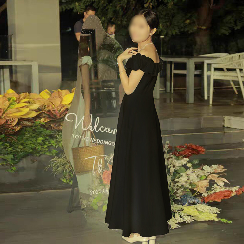 French style niche evening dress long dress white small dress women's high-grade off-shoulder bridesmaid dress dress light wedding dress