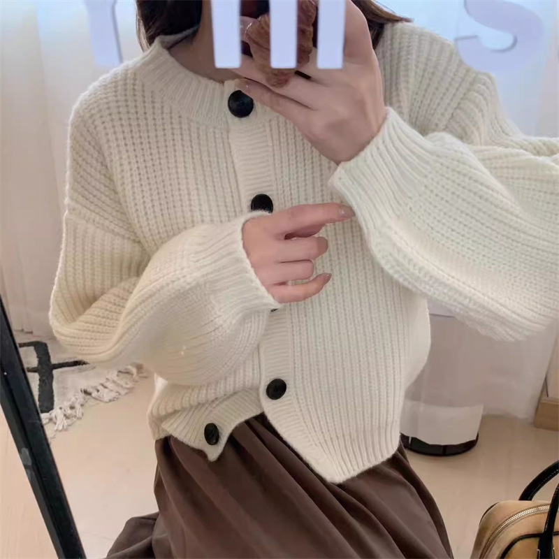 Korean Style Lazy Style Round Neck Buttoned Knitted Cardigan for Women in Autumn and Winter New Style Loose Soft Waxy Sweater Jacket