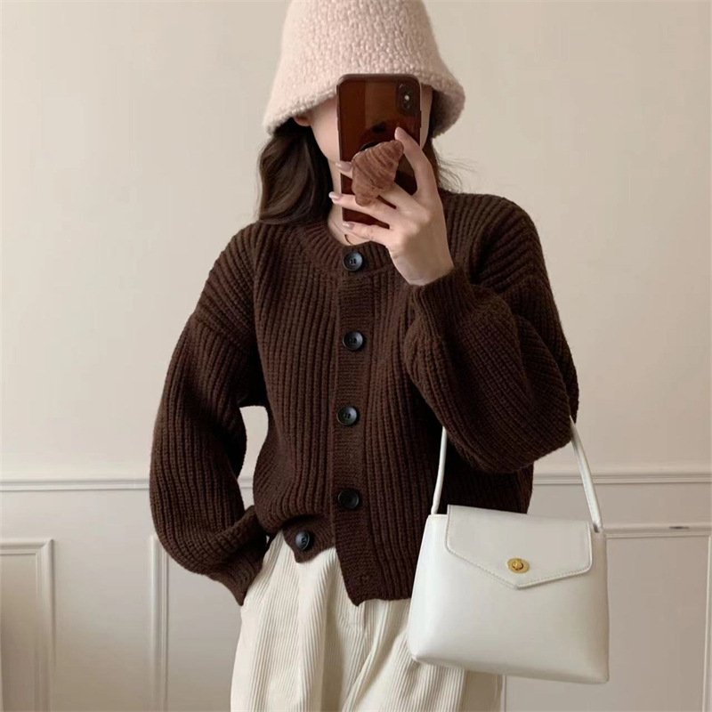 Korean Style Lazy Style Round Neck Buttoned Knitted Cardigan for Women in Autumn and Winter New Style Loose Soft Waxy Sweater Jacket