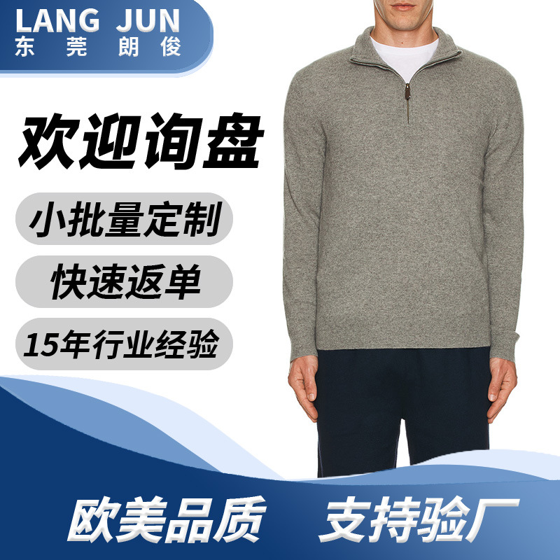 Langjun Customized Men's Loose Half-Zip Turtleneck Knitted Cardigan Light Gray Trendyy Men's Knitted Top