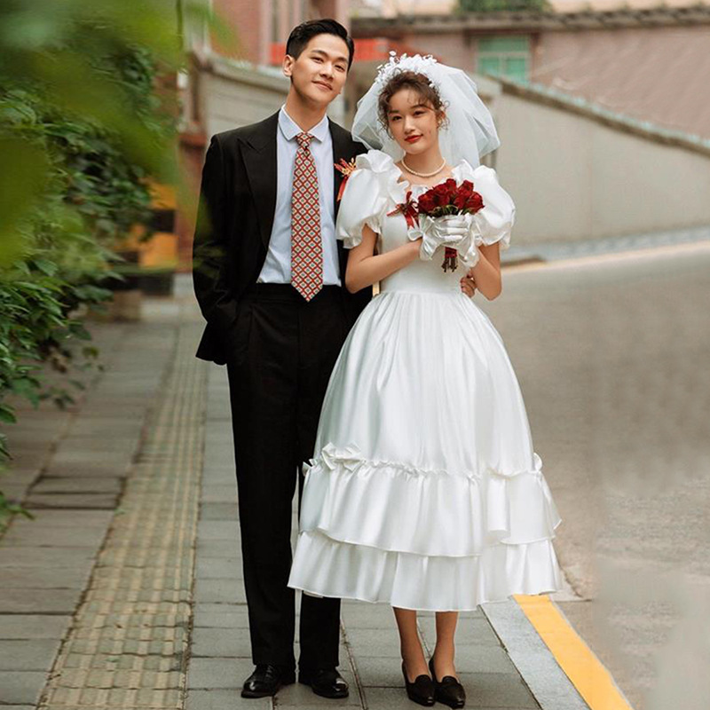 Light Wedding Dress 2025 New French Retro Hepburn Style Simple Satin Forest Style Bride Travel Photography Wedding Dress for Women