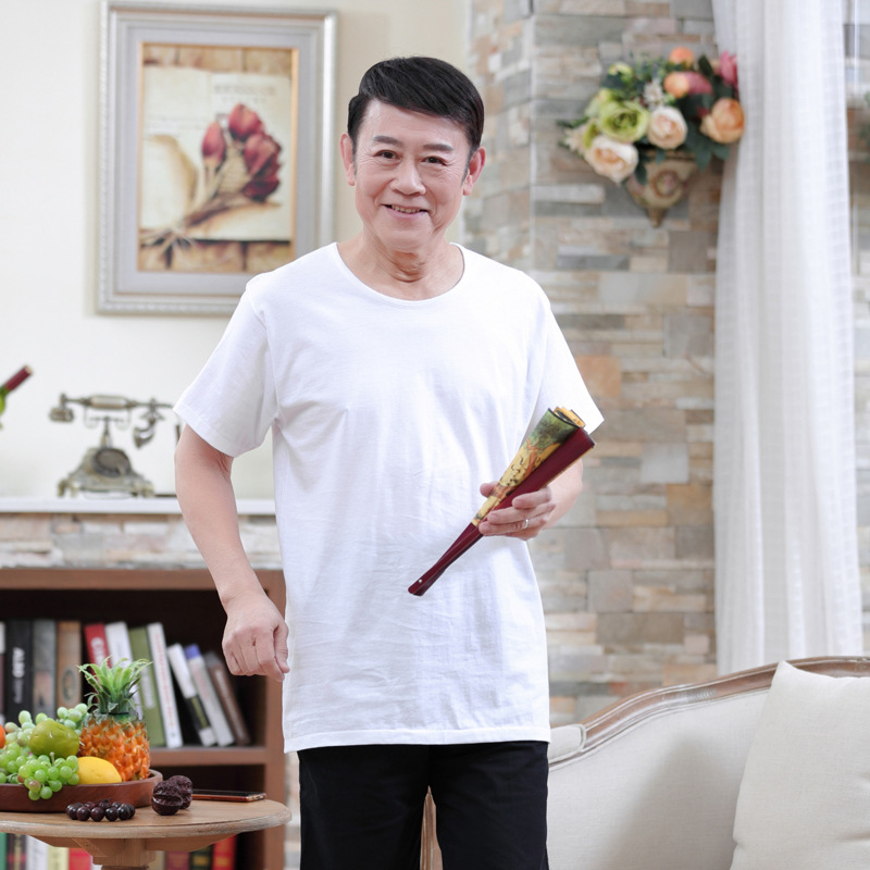 Middle-aged and elderly men's short-sleeved T-shirt cotton undershirt vest loose old shirt plus size home dad wear