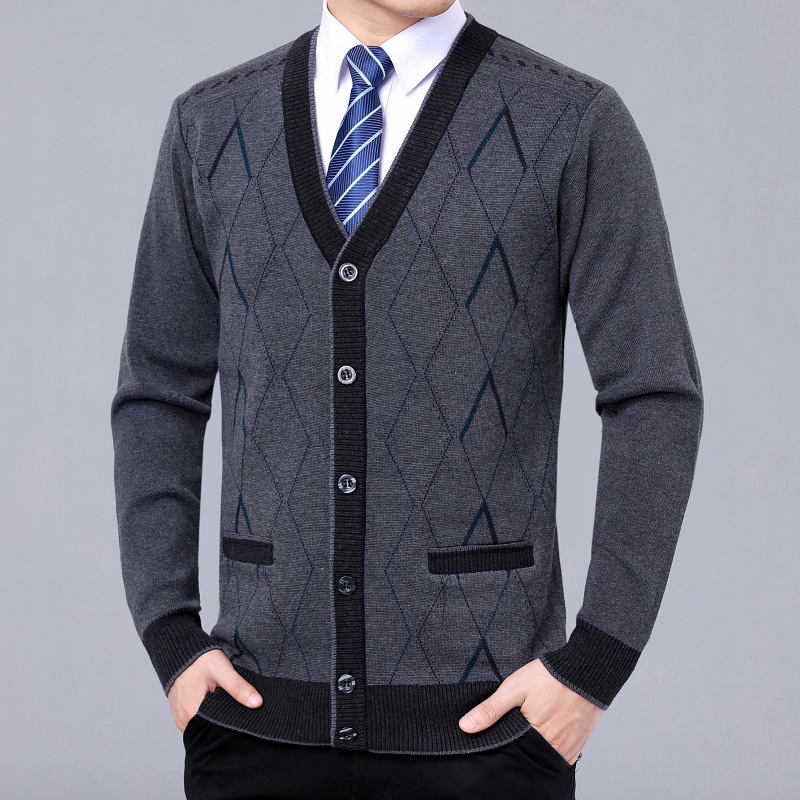 Middle-aged and elderly men's woolen sweater cardigan elderly sweater knitted sweater coat father's Spring and Autumn Sweater