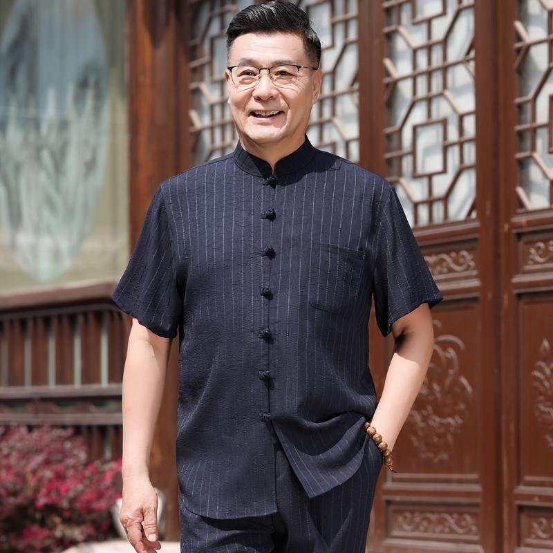 Middle-aged Dad Tang Clothes Ice Silk Short-sleeved suit Chinese Style Grandpa Old Man Summer Clothes Middle-aged Men's Summer Clothes
