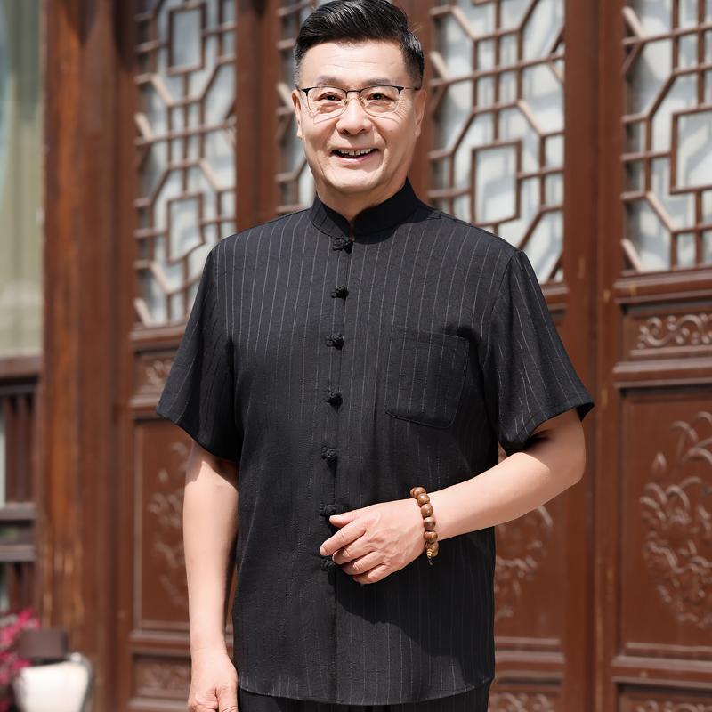Middle-aged Dad Tang Clothes Ice Silk Short-sleeved suit Chinese Style Grandpa Old Man Summer Clothes Middle-aged Men's Summer Clothes