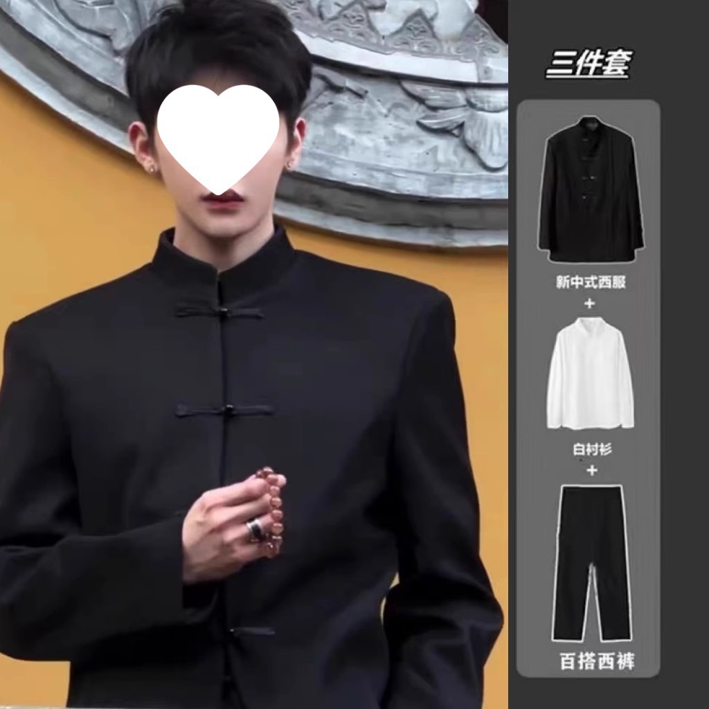New Chinese Men's Medium Suit Men's Autumn Collar Shoulder Pad Jacket Zhongshan Tang Suit Casual suit Jacket in stock