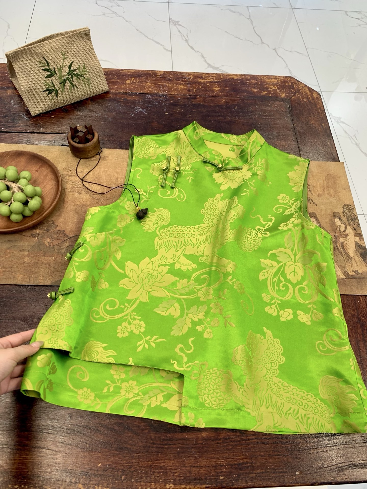 New Chinese-Style High-End Luxury Silk Satin Jacquard Button Vest for Women, National Style Irregular Niche Design Top 12