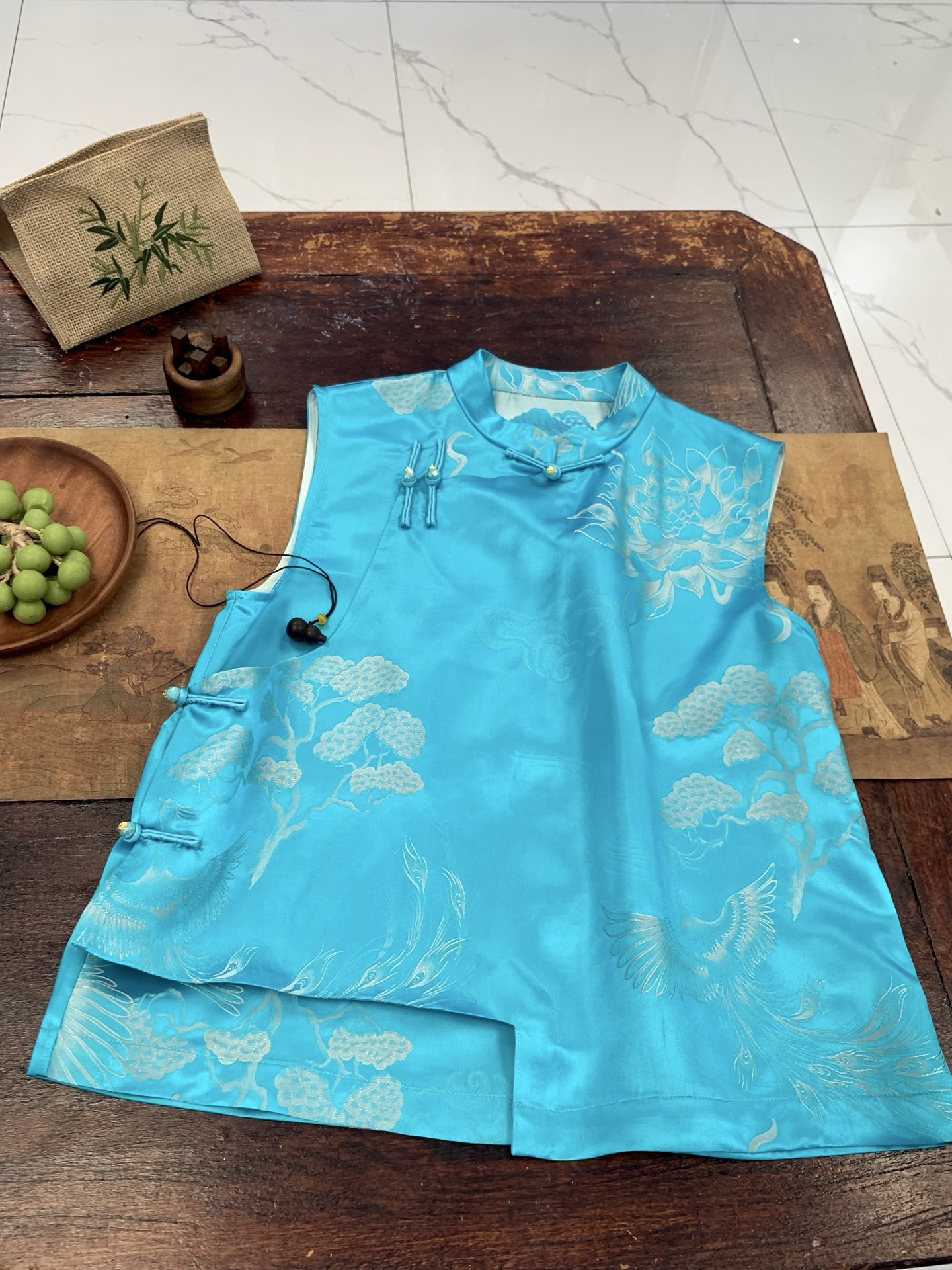 New Chinese-Style High-End Luxury Silk Satin Jacquard Button Vest for Women, National Style Irregular Niche Design Top 12