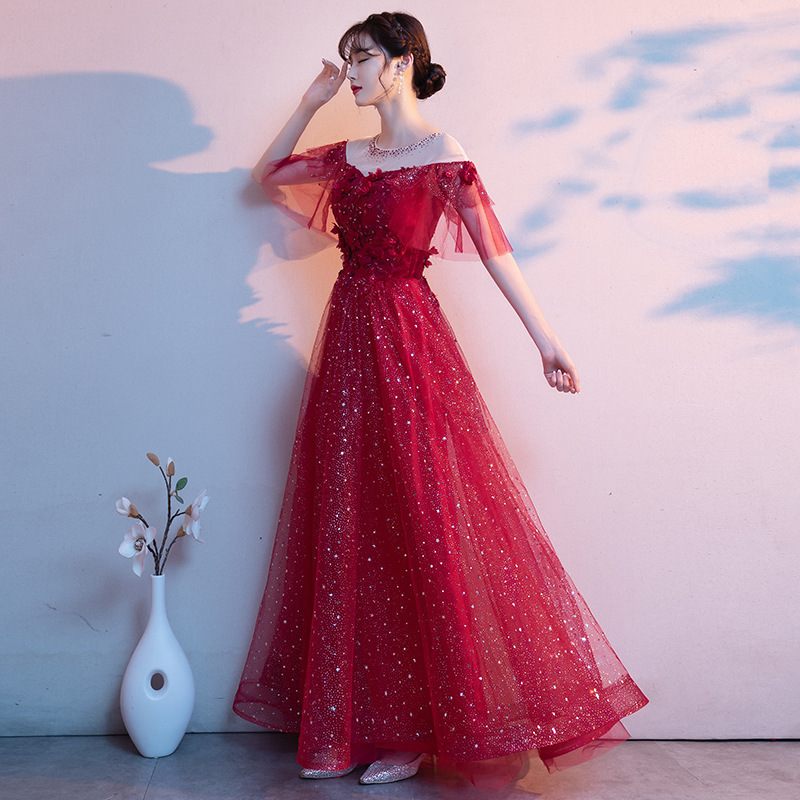 Pregnant Women's Toast Dress Burgundy Women's 2025 New Autumn and Winter One-Shoulder Bride Wedding Dress High Waist Belly Covering Large Size