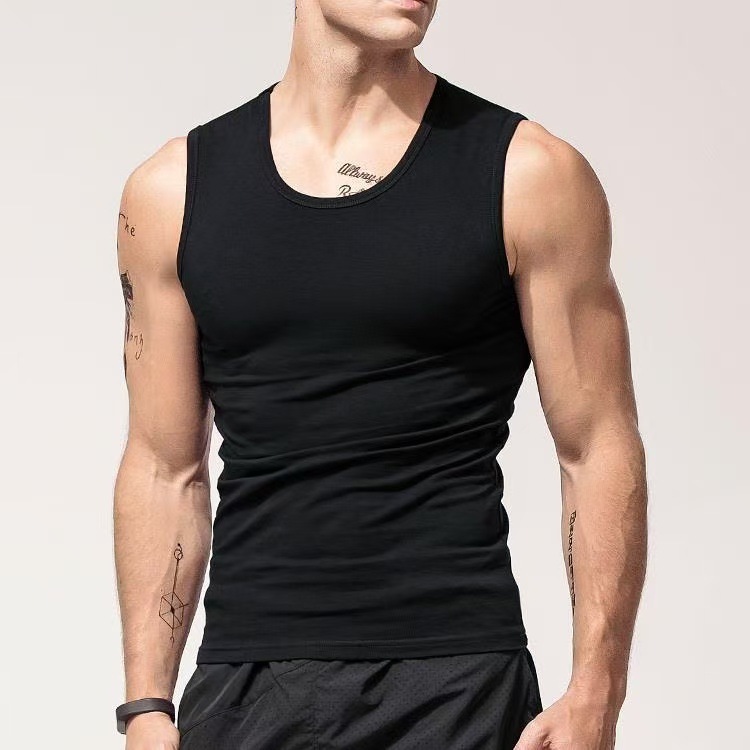 Pure Cotton Bottoming Vest Men's Sleeveless T-Shirt Outfit Fashionable Wide Shoulder Ware Sleeve Tight Fit Sports Ware Shoulder Trendy