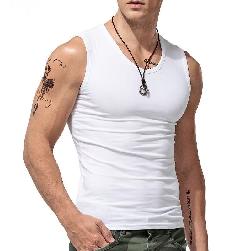 Pure Cotton Bottoming Vest Men's Sleeveless T-Shirt Outfit Fashionable Wide Shoulder Ware Sleeve Tight Fit Sports Ware Shoulder Trendy