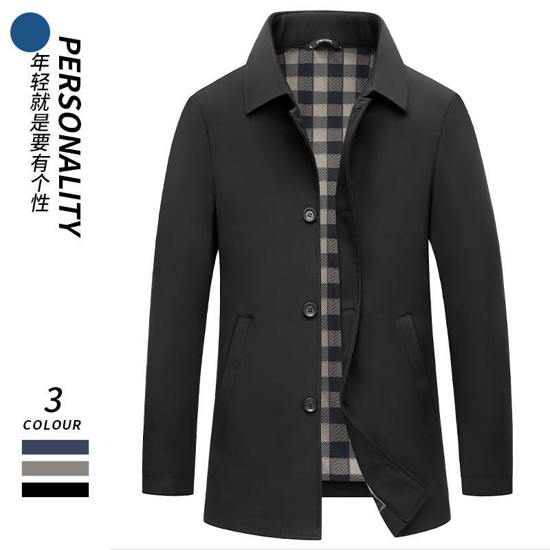 Spring and autumn coat men's lapel autumn single-breasted mid-length casual men's jacket handsome British men's trench coat