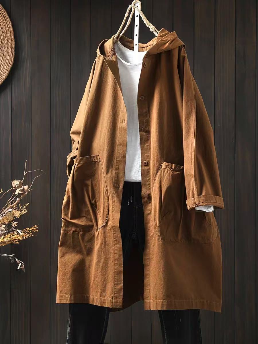 Spring New Large Pocket Trench Coat Mid-length Casual Hooded Loose Tall Trench Coat Women's 81508