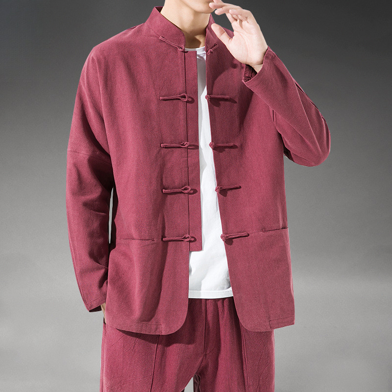 Tang Suit Men's Chinese-style Autumn Linen suit Vintage Jacket Chinese-style Buckle Jumpsuit Cotton-linen Collar Chinese Tunic
