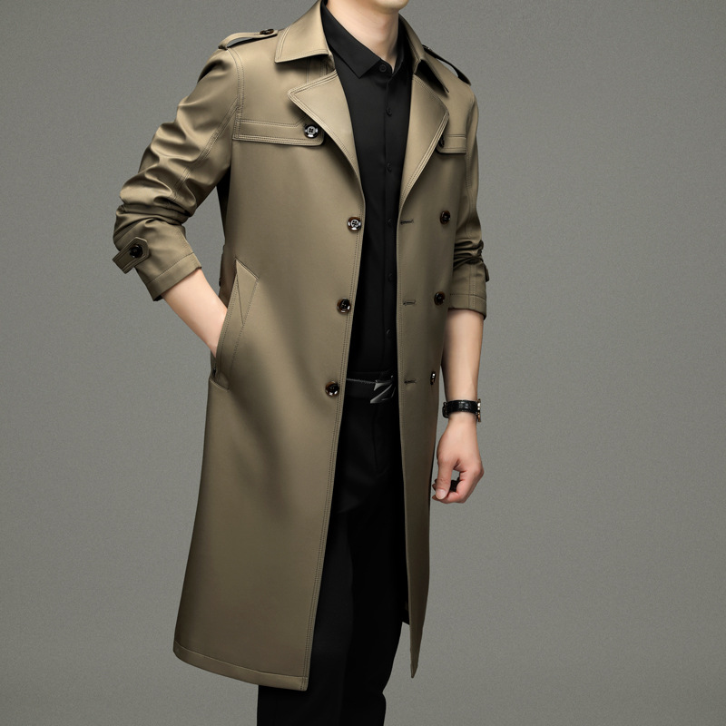 Windbreaker Men's 2023 Spring New Men's Over-the-Knee Double-Breasted Windbreaker Long Men's Top Coat Men's Fashion