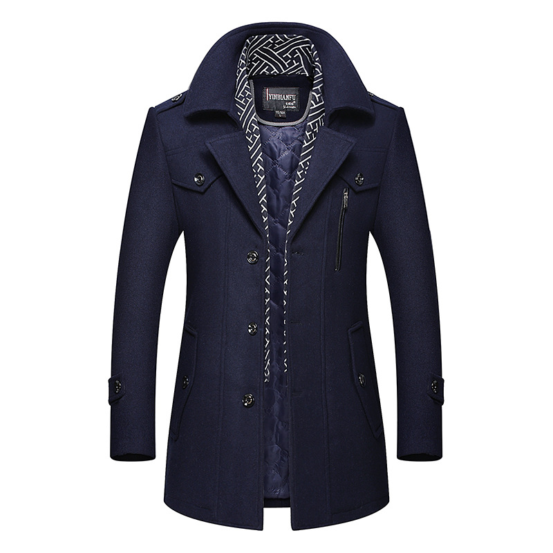 Woolen coat men's new scarf collar mid-length wool coat men's middle-aged thickened lapel woolen coat men's